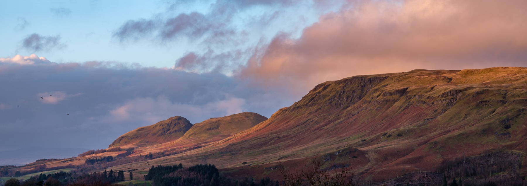 The walk up onto Muirhouse Muir was well worth it with the stunning views of the Slackdhu Craggs above Strathblane bedded in the warm evening sun.
