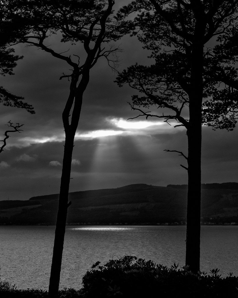 While we were drinking a coffee in the car after our walk, the weather finally cleared a little, with ominous rain clouds remaining over the Loss Hills on the other side of the loch, finally providing an opportunity for some photography.